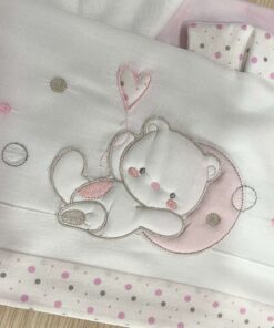 Set lenzuolino culla/carrozzina neonata in cotone, di colore rosa e bianco, con disegno in rilievo.