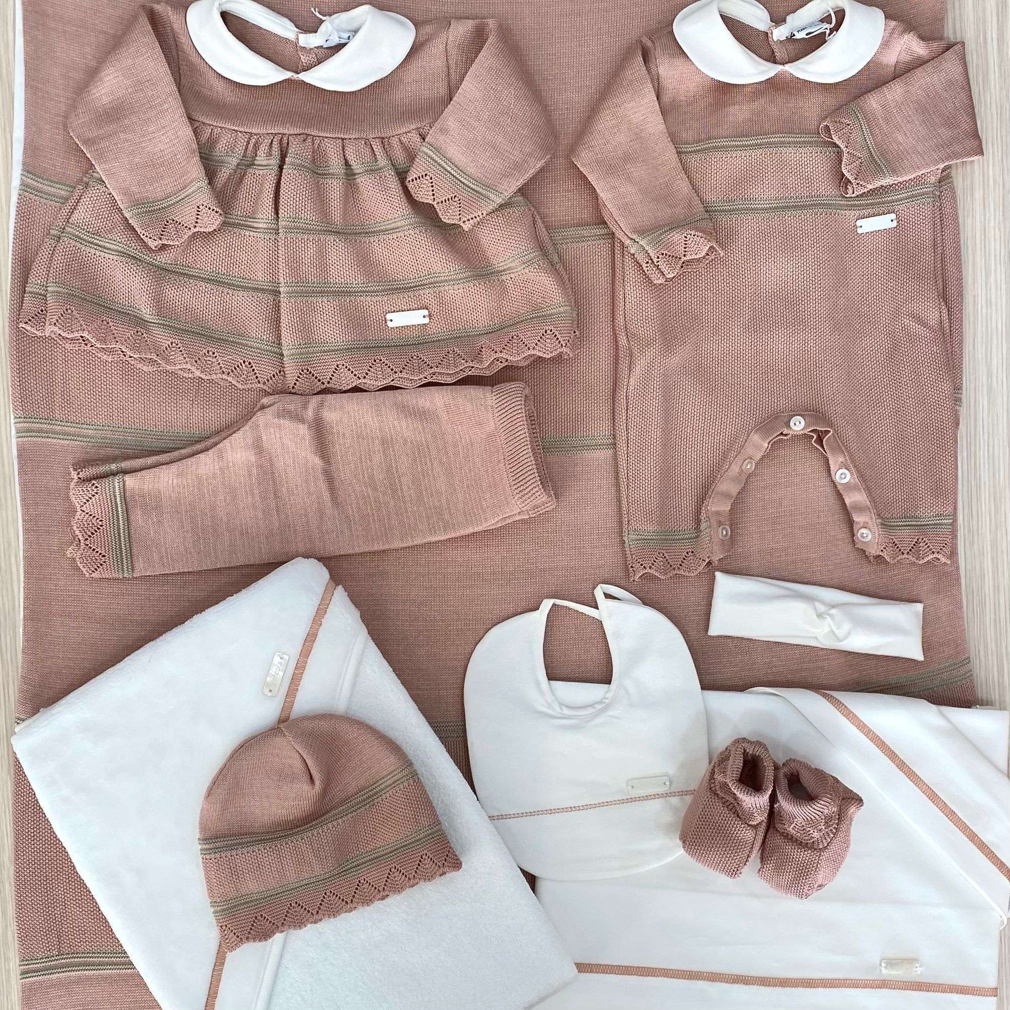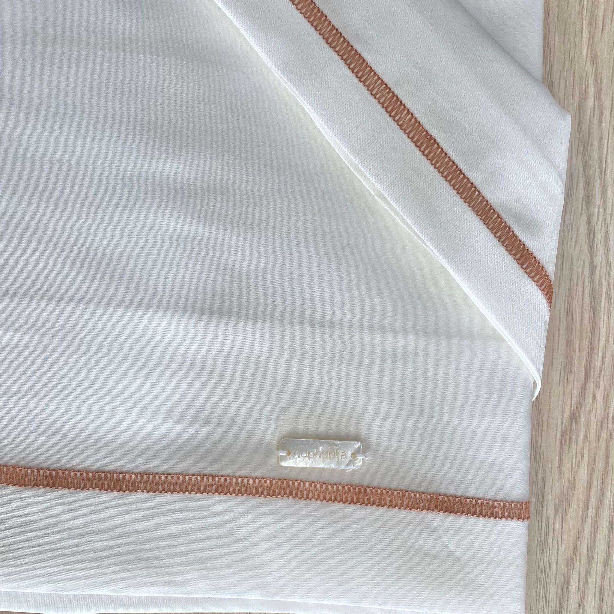 Set lenzuolino culla/carrozzina neonata in cotone, di colore panna e cinnamon, con applicazione di logo.