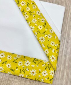Set lenzuolino culla/carrozzina neonata, in cotone, di colore bianco e giallo, con disegno di fiorellini.