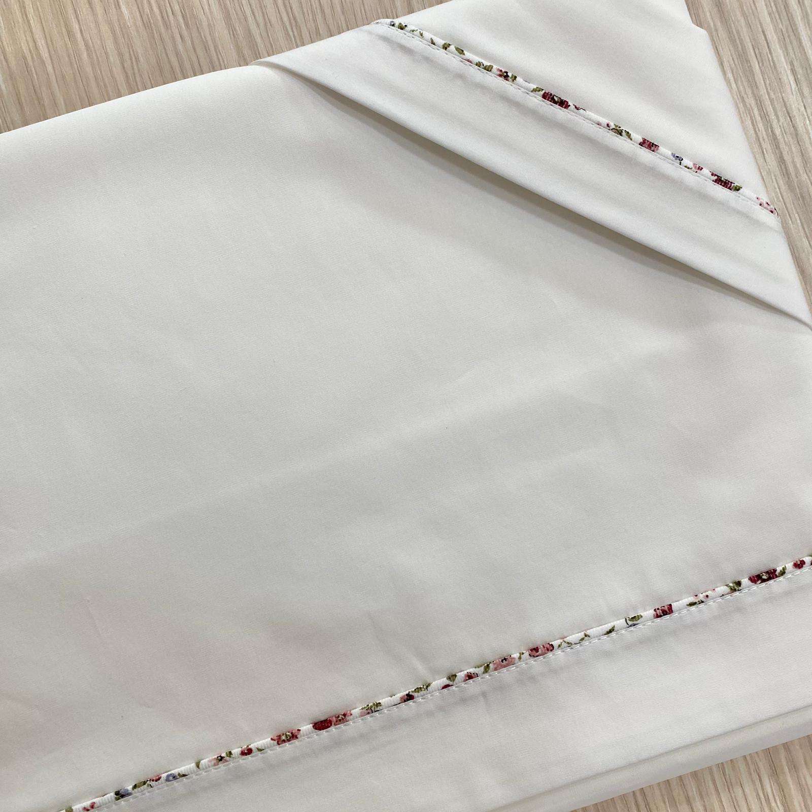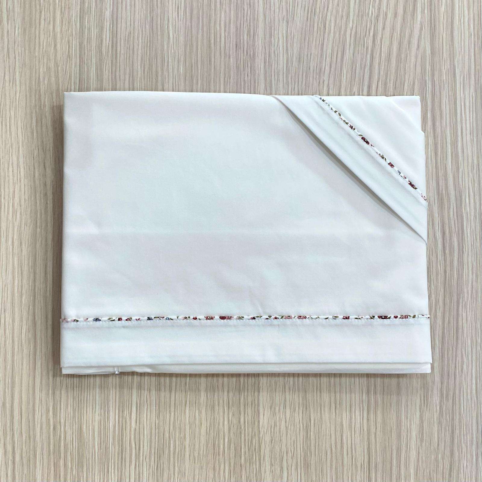 Set lenzuolino culla/carrozzina neonata, in cotone, di colore panna, con disegno di floreali di vari colori.
