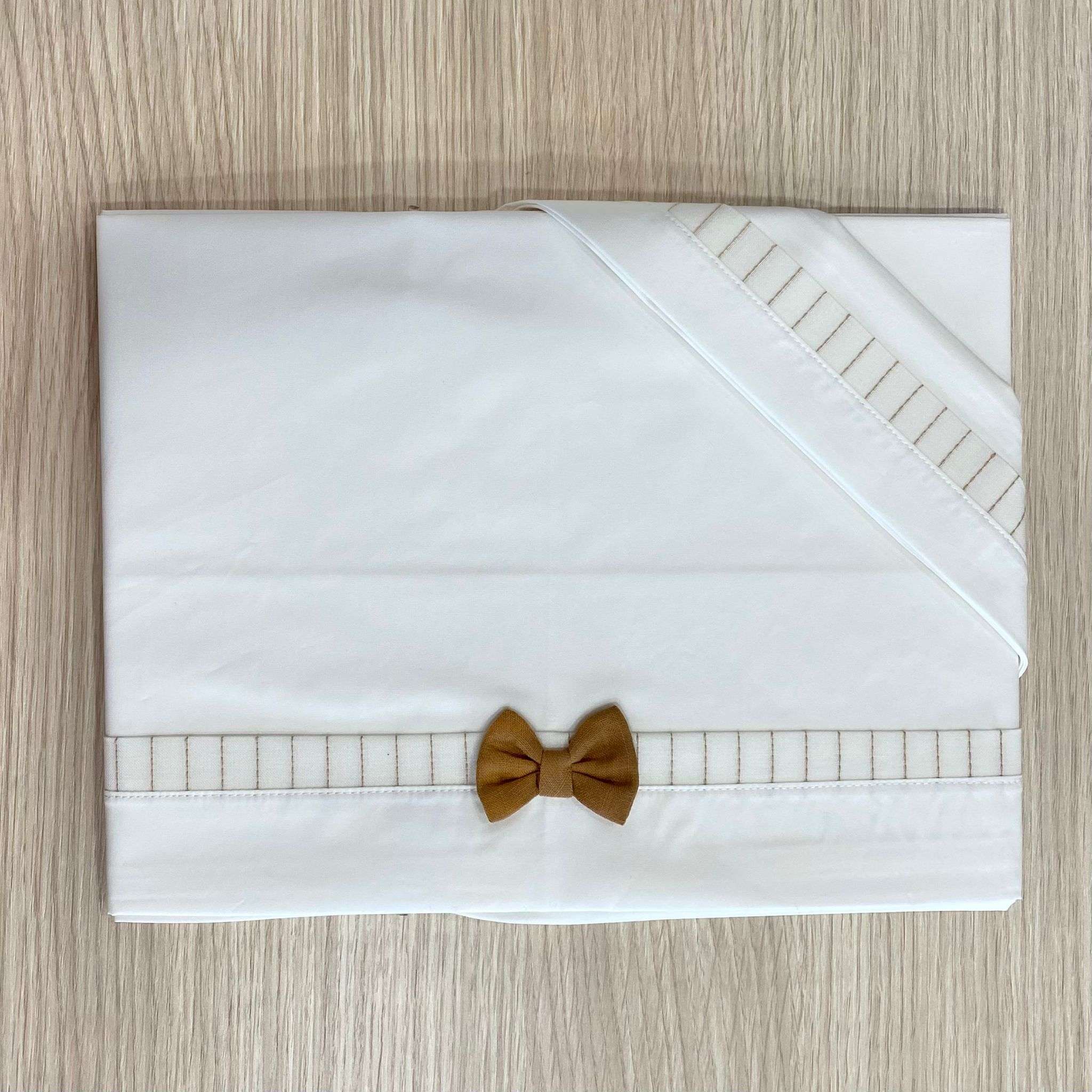 Set lenzuolino culla/carrozzina in cotone, di colore panna e cammello.