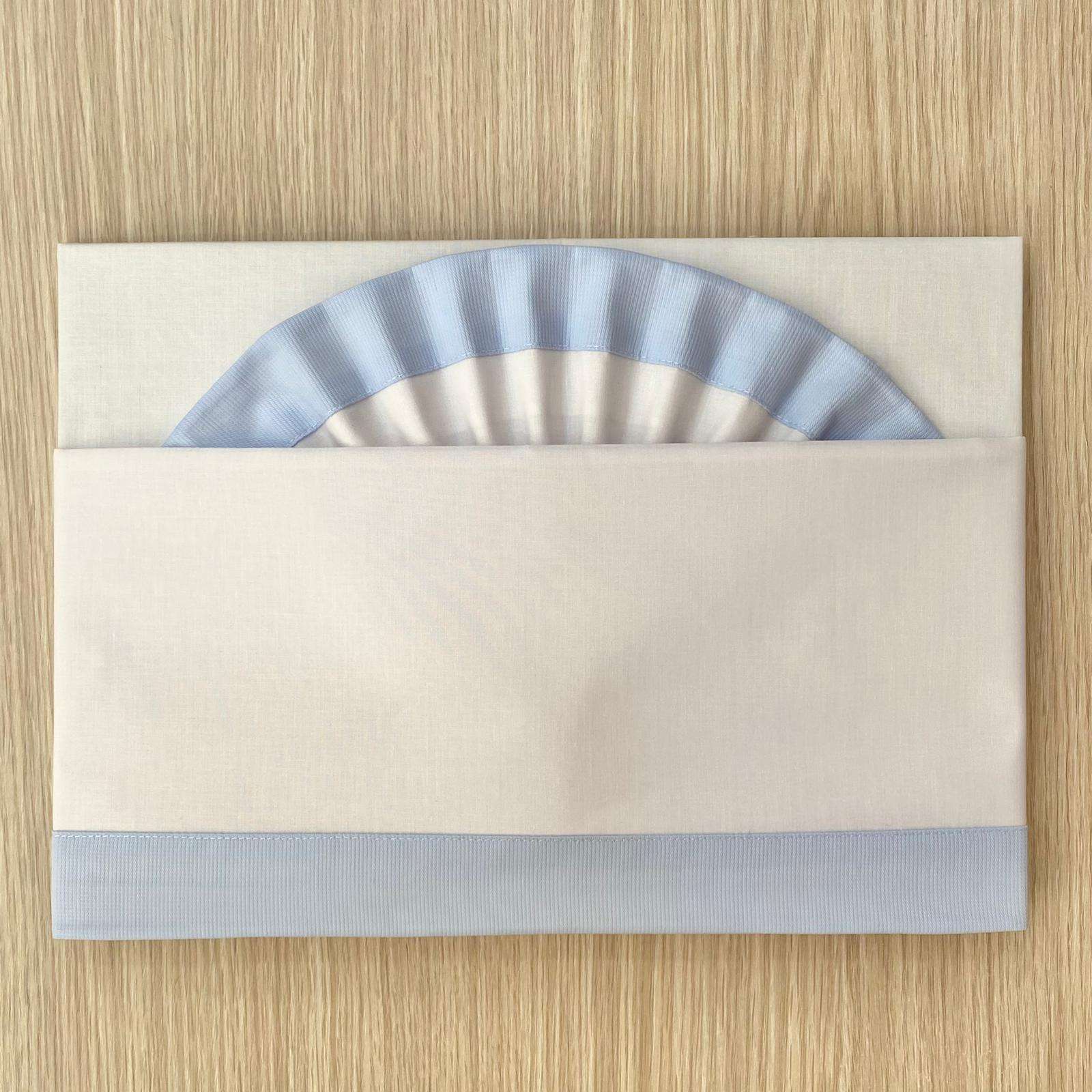 Set lenzuolino culla/carrozzina neonato in cotone, di colore bianco e azzurro.