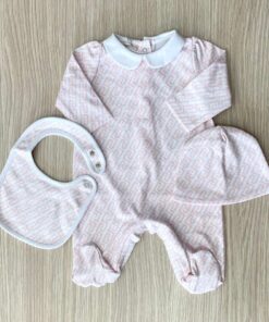 Tutina intera neonata in cotone, di colore bianco, con logo LIU•JO di colore rosa.
