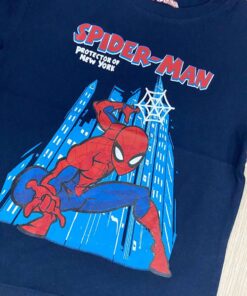 T-shirt bambino in cotone, di colore blu, con stampa Spider-Man di vari colori.