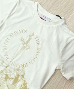 T-shirt da ragazzo firmata Paciotti realizzata in cotone 100%, morbido e traspirante, ideale per garantire comfort durante tutta la giornata. Il modello presenta girocollo classico e vestibilità regolare, perfetta per un look casual ma ricercato. T-shirt di colore panna.
