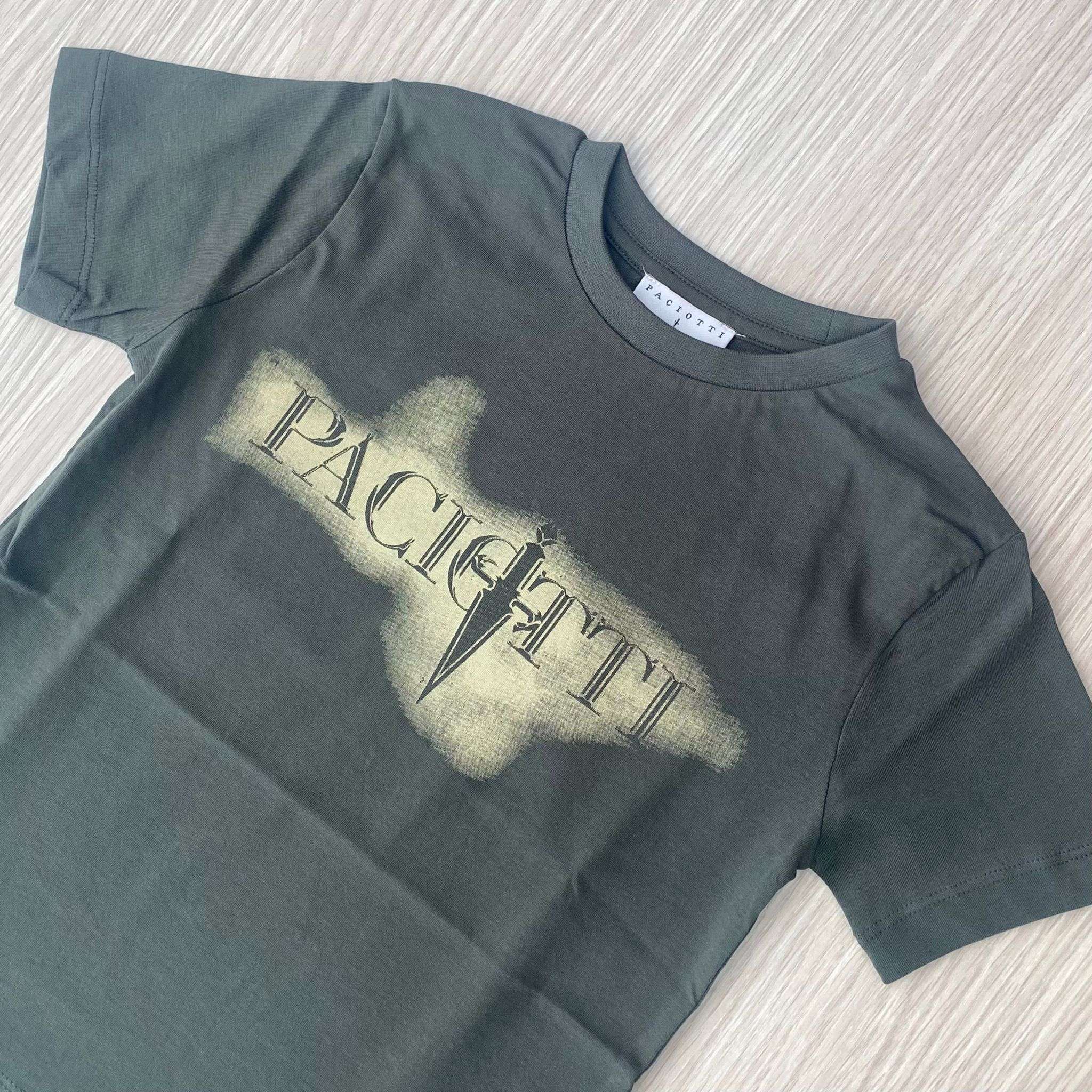 T-shirt da ragazzo firmata Paciotti realizzata in cotone 100%, morbido e traspirante, ideale per garantire comfort durante tutta la giornata. Il modello presenta girocollo classico e vestibilità regolare, perfetta per un look casual ma ricercato. T-shirt di colore verde militare.