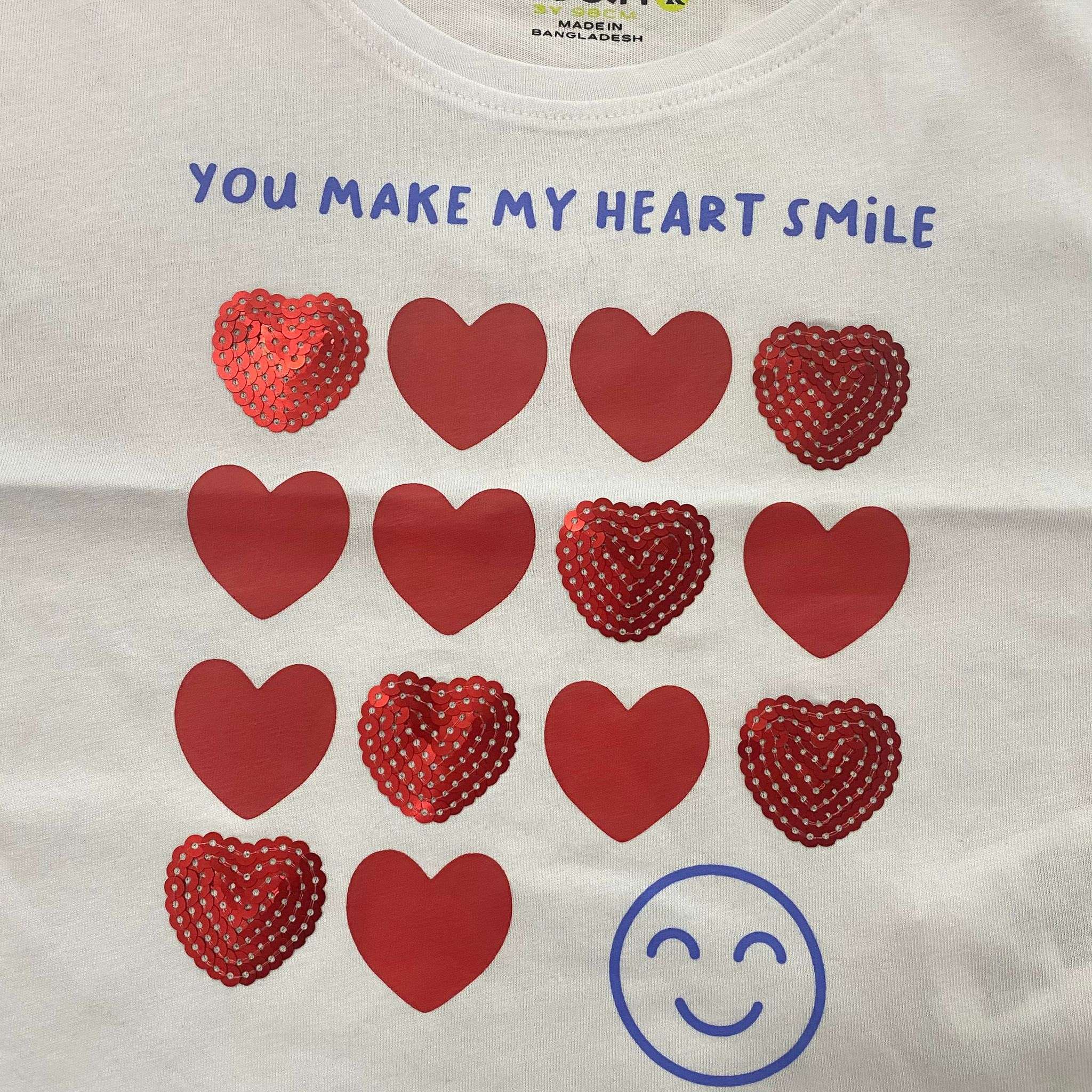 T-shirt cropped bambina in cotone, di colore bianco, con stampa e paillettes.