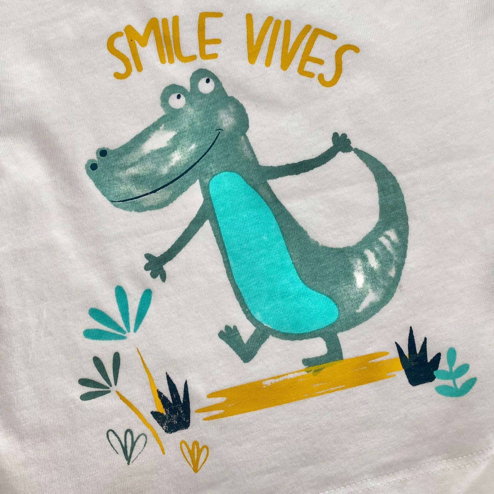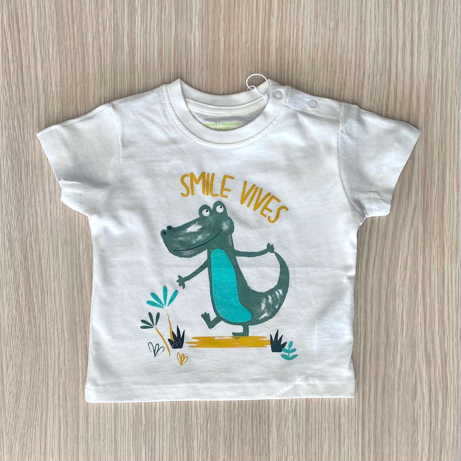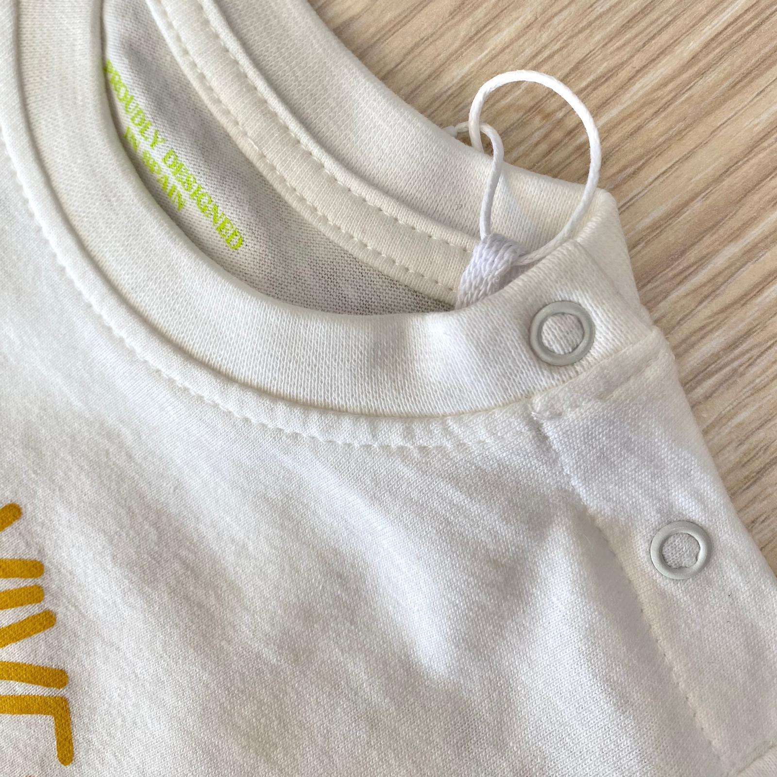 T-shirt neonato/bambino in cotone, di colore ecru, con stampa di vari colori.
