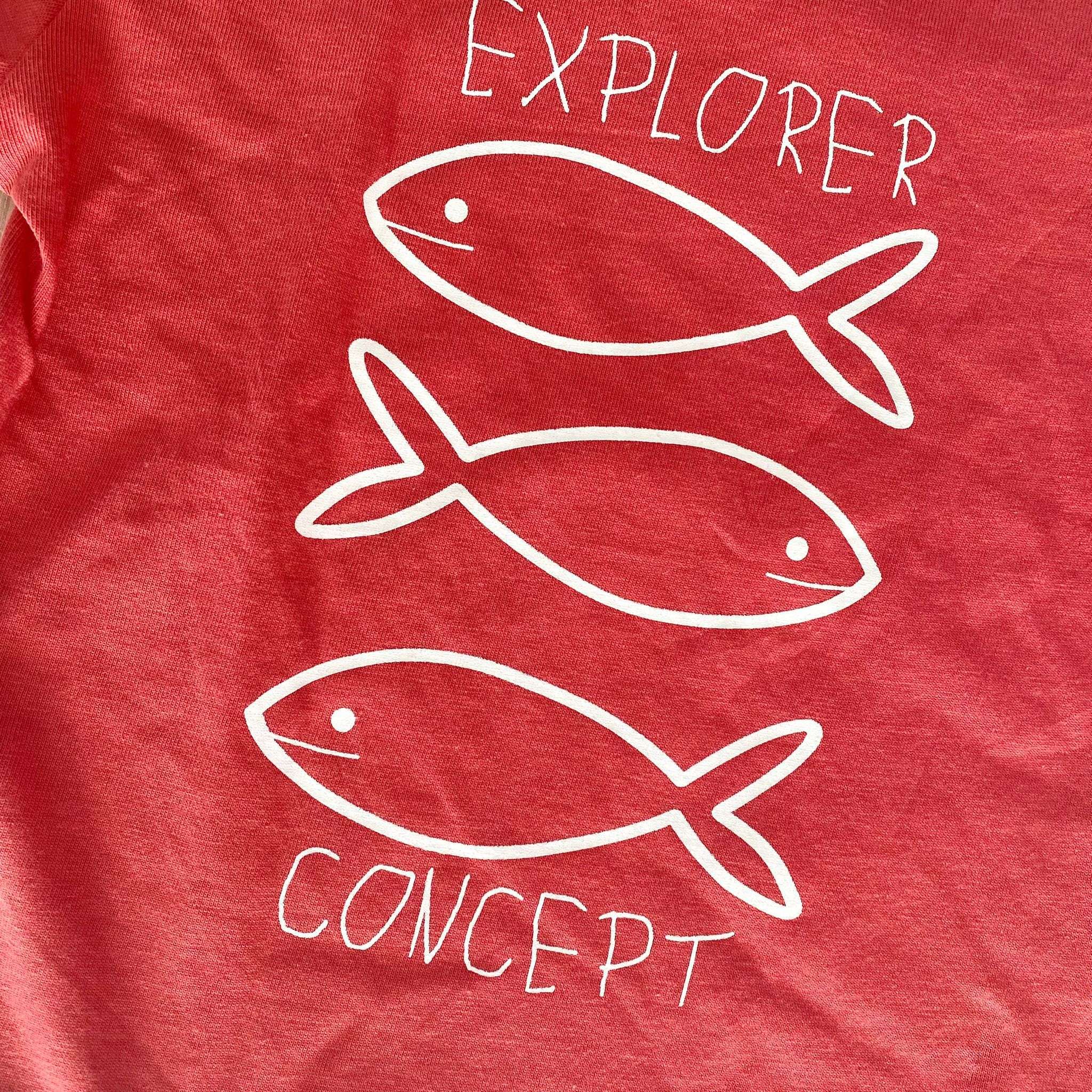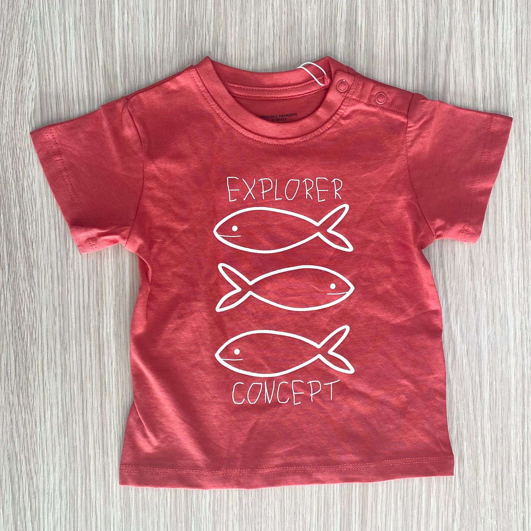 T-shirt neonato/bambino in cotone, di colore rosso chiaro con dettagli di stampa di colore panna.