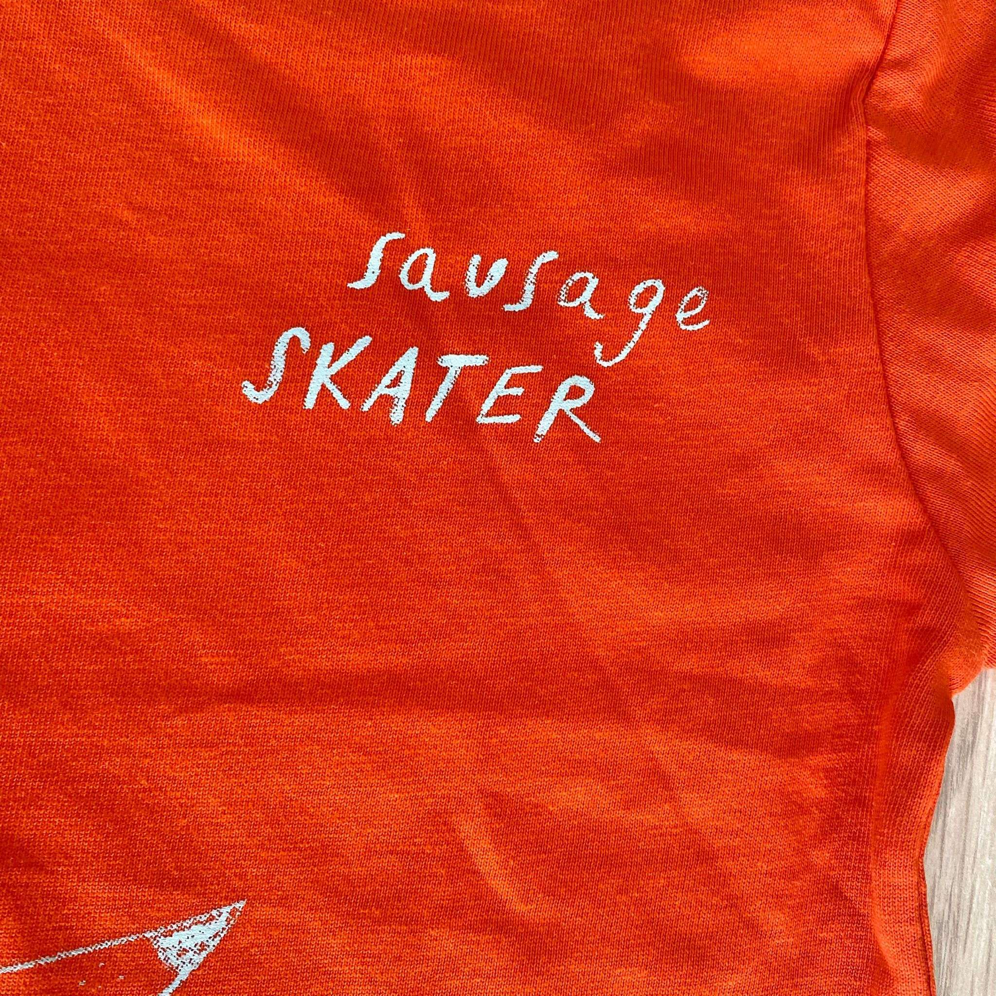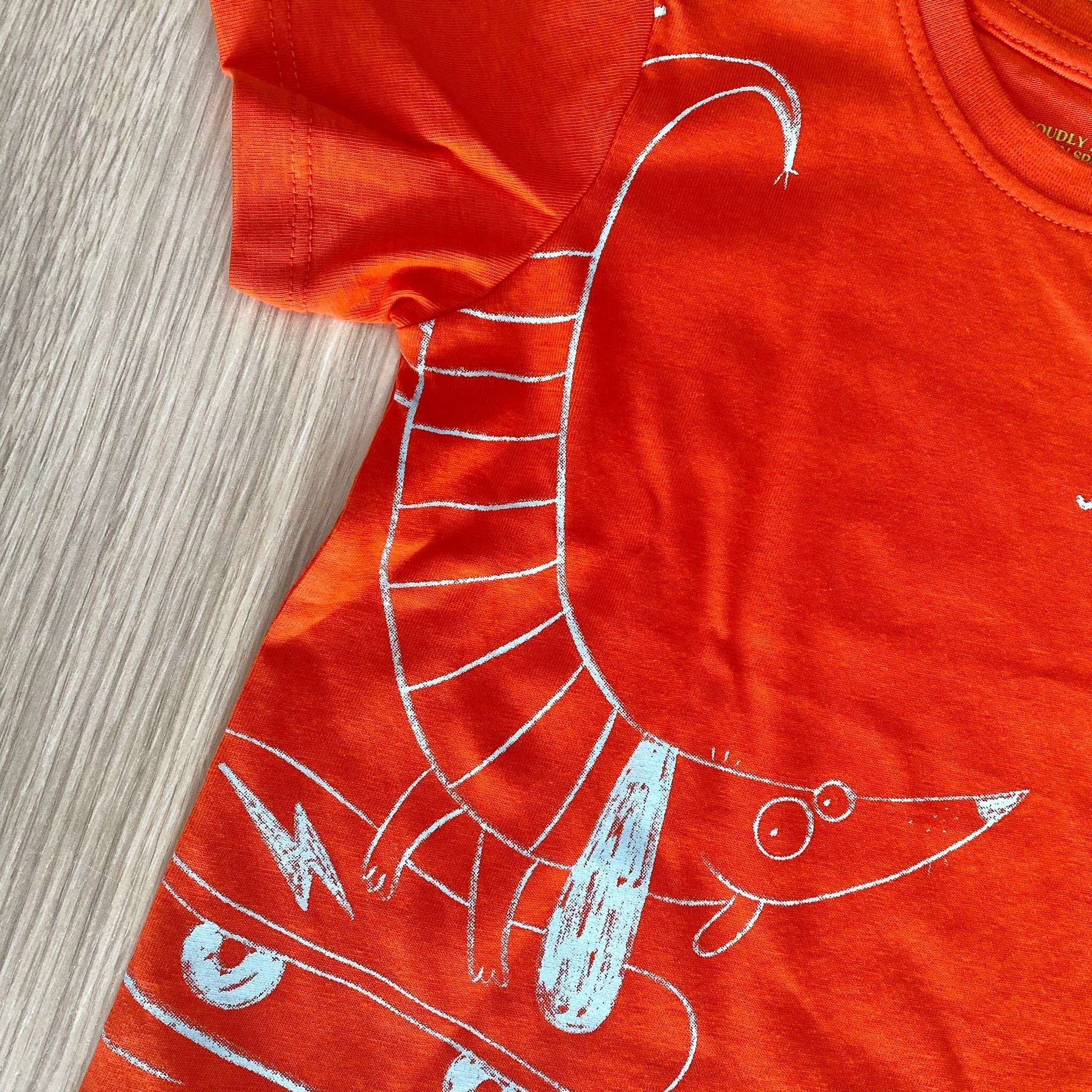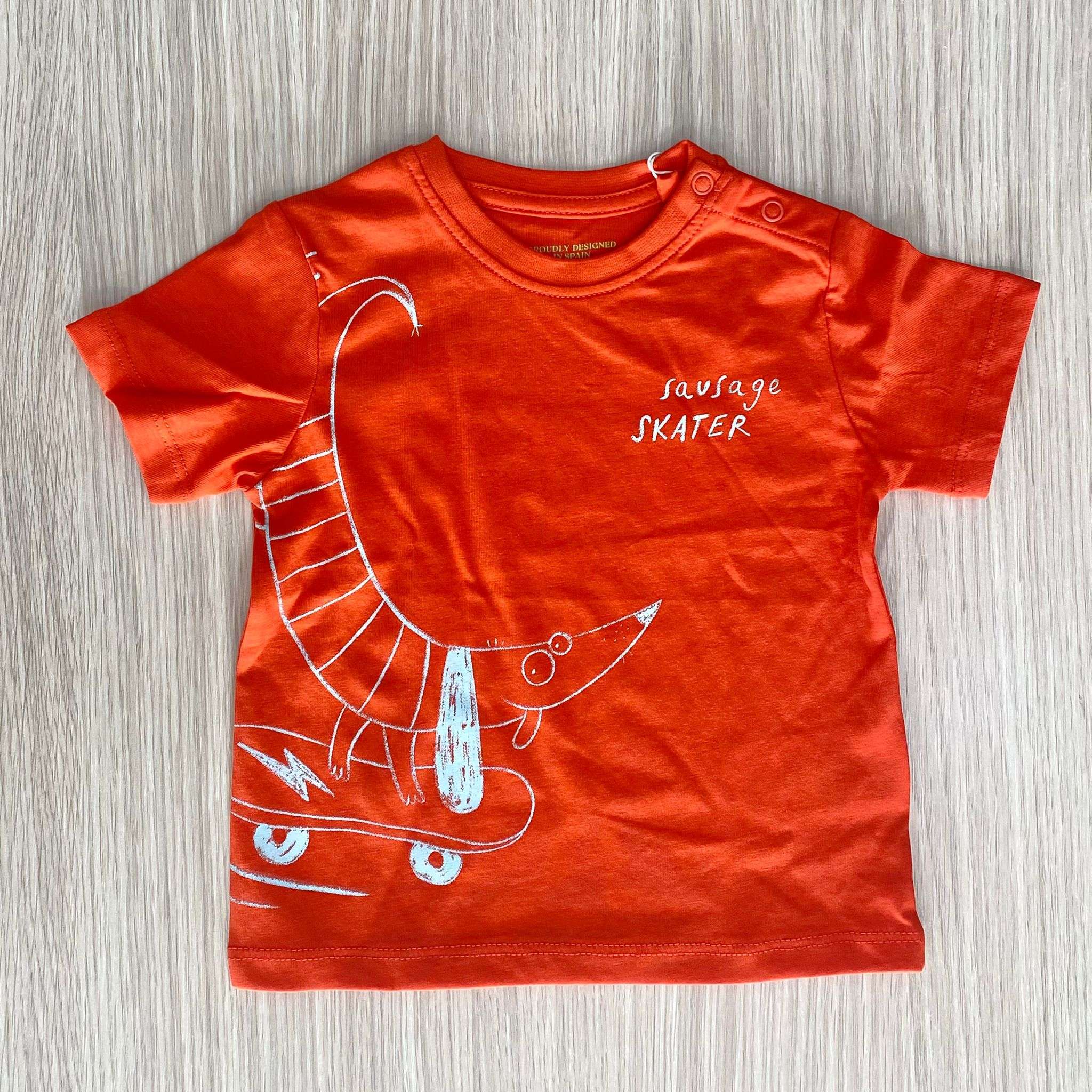 T-shirt neonato/bambino in cotone, di colore arancione con dettagli di stampa.