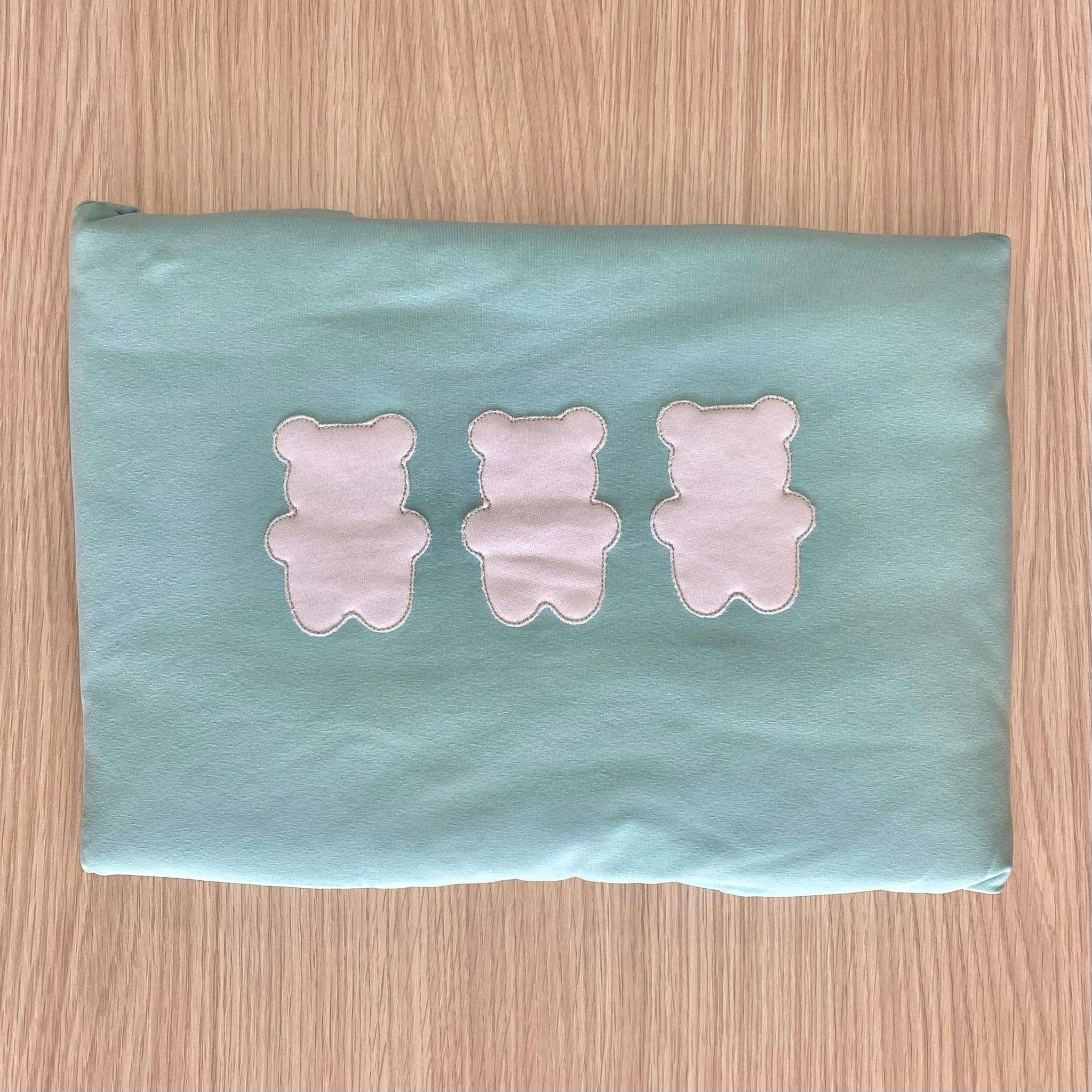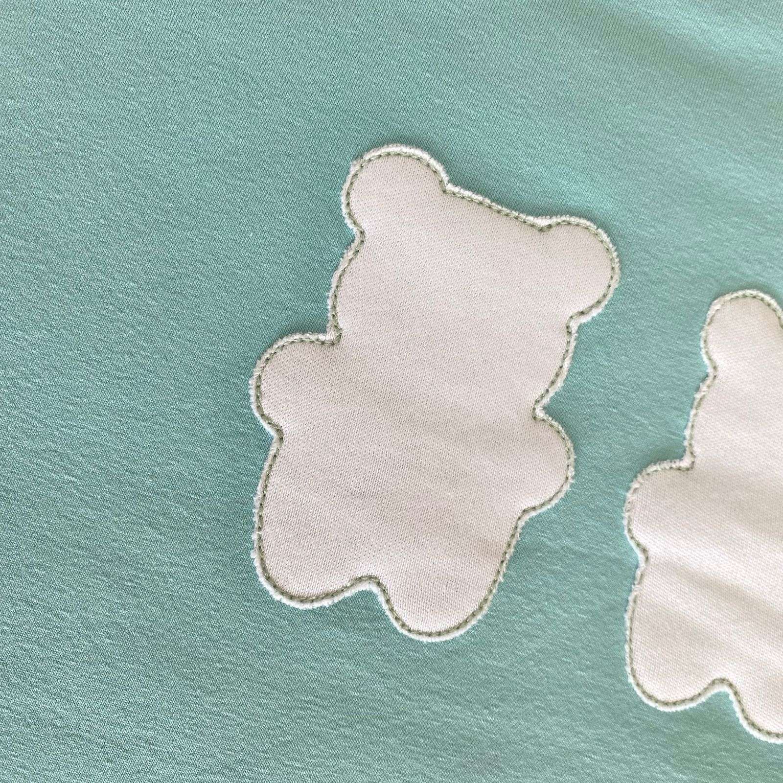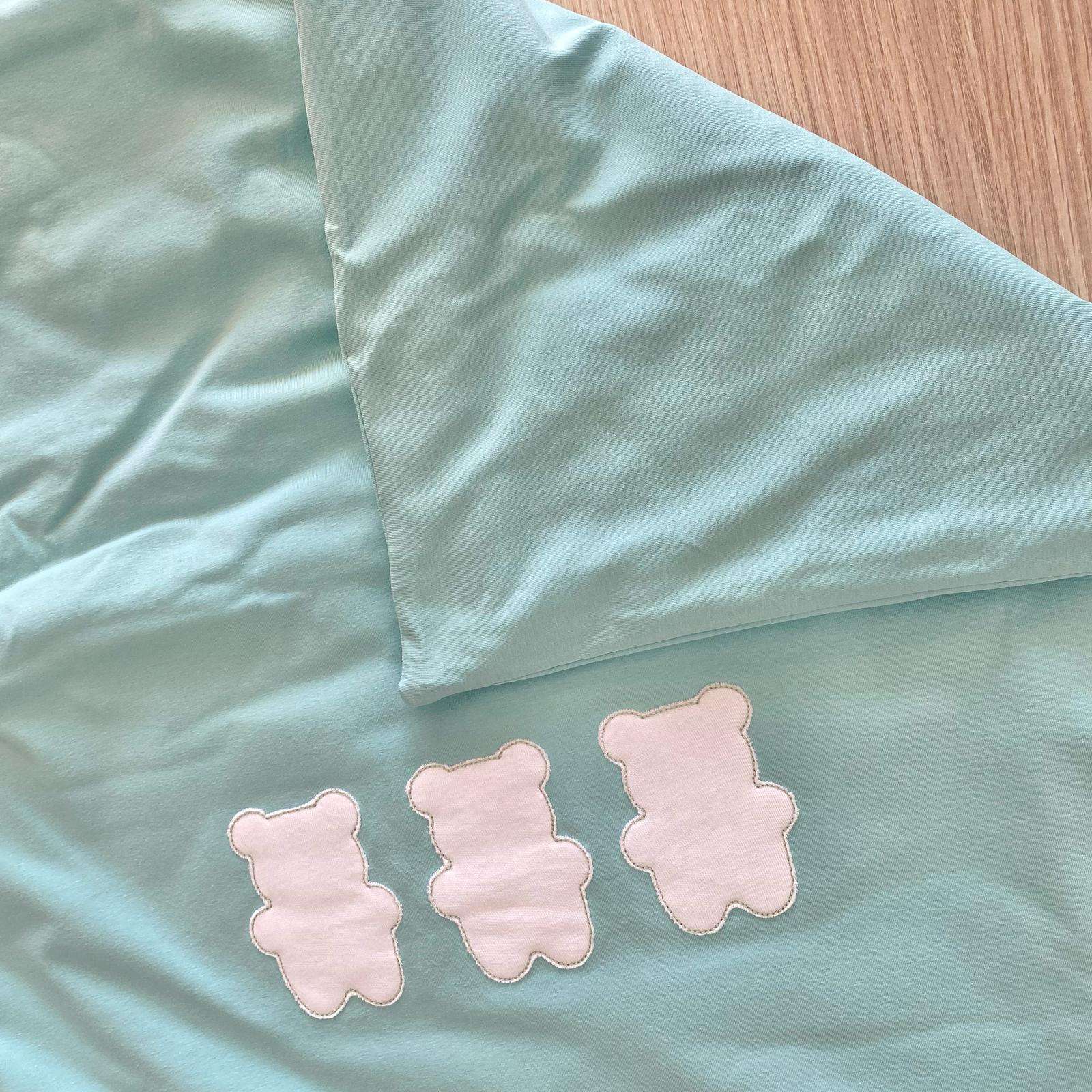 Trapuntina sfoderabile neonato in cotone, di colore verde acqua e bianco, con disegni ricamati.
