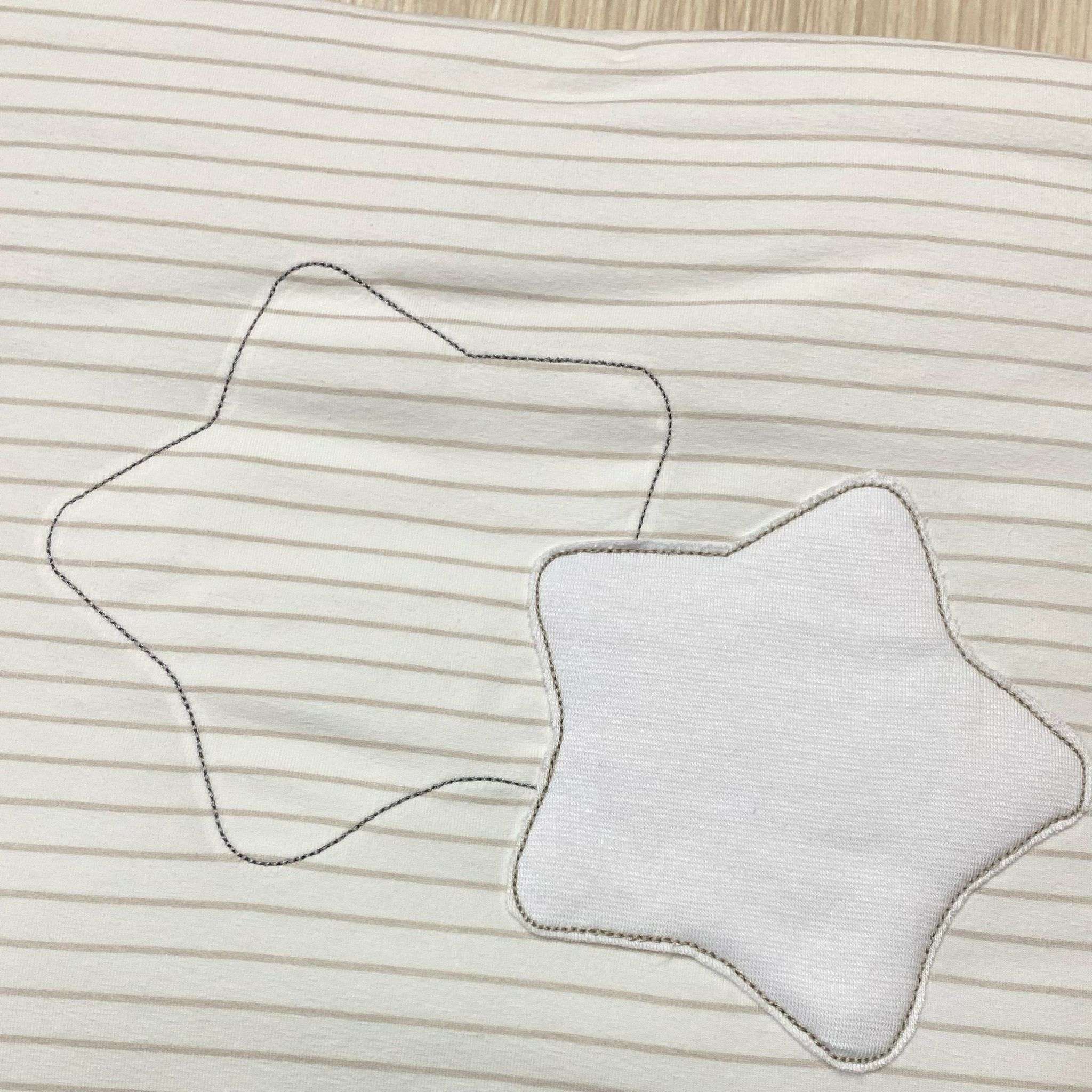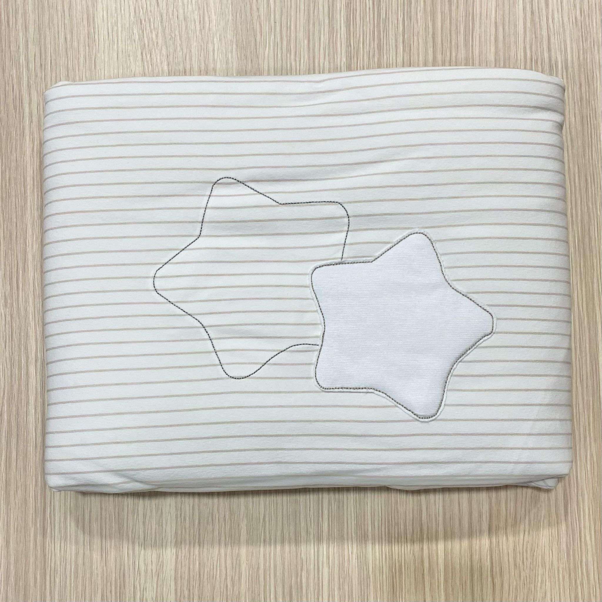 Trapuntina sfoderabile neonato in cotone, di colore sabbia e bianco, con disegni ricamati.