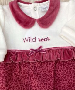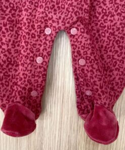Tutina intera neonata in ciniglia, di colore rosa e bianco, con effetto animalier.