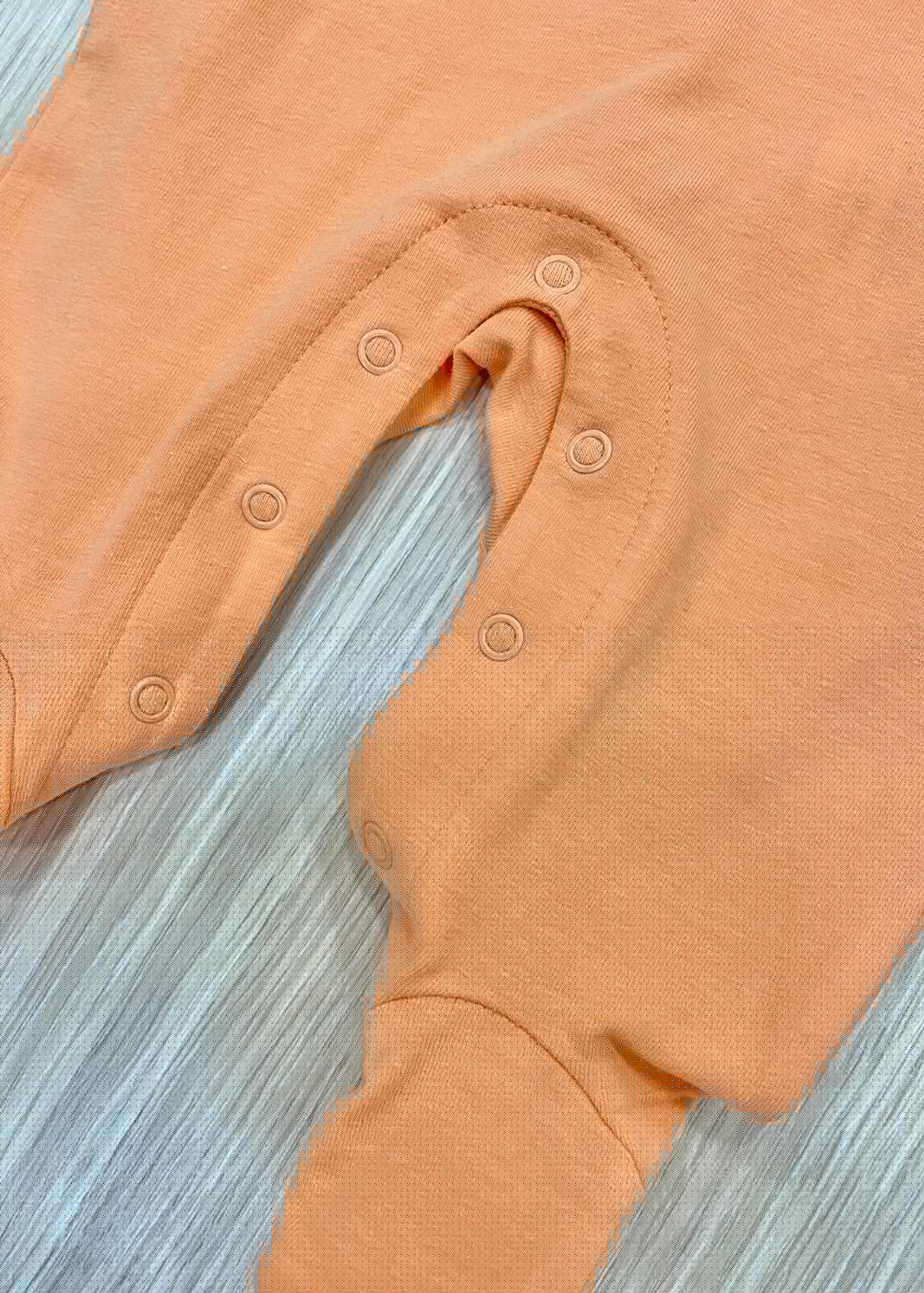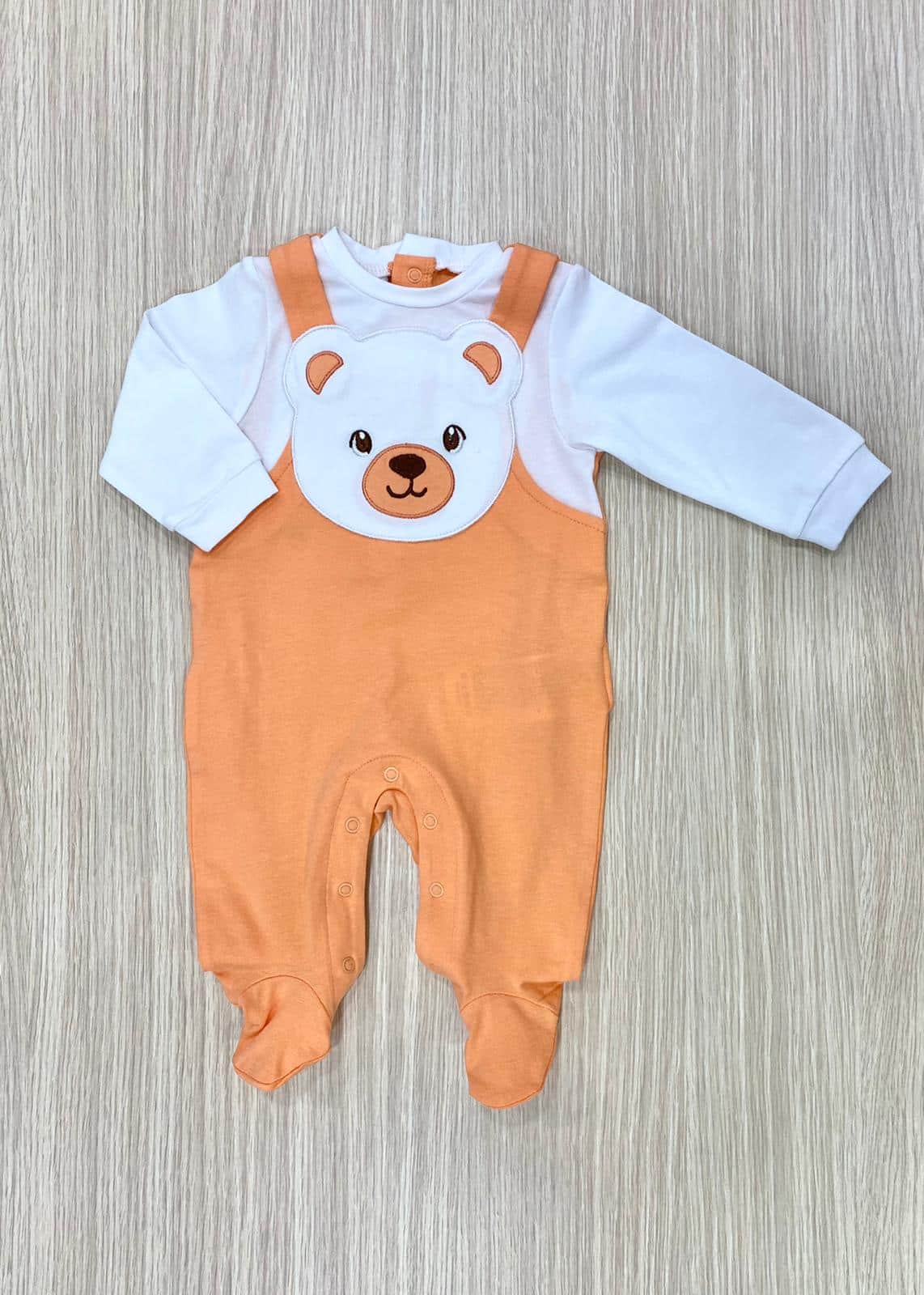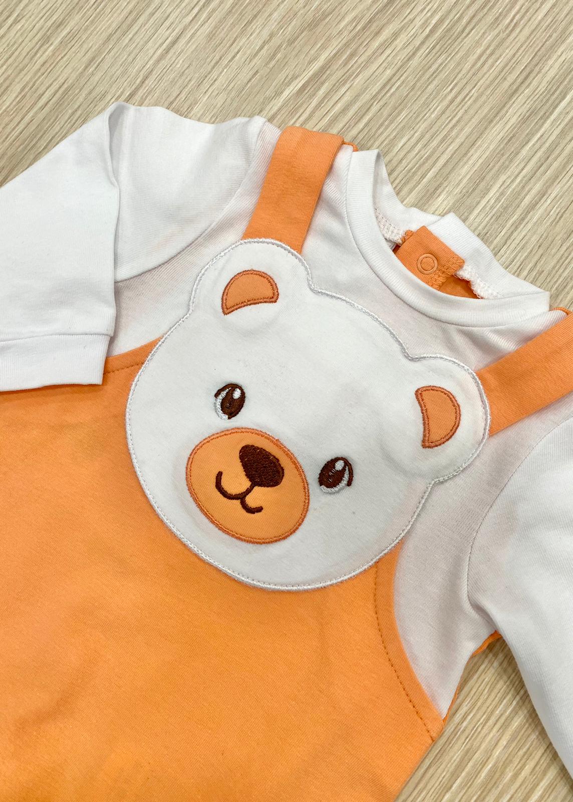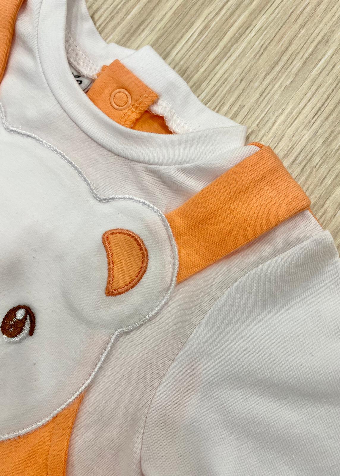 Tutina intera neonato/bambino in cotone, di colore arancione e bianco, con dettaglio di finta salopette.
