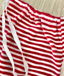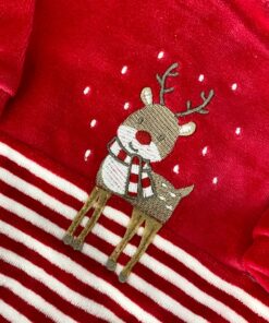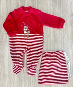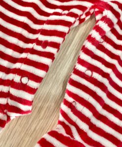 Tutina intera/pigiamino neonato/a in ciniglia, di colore rosso e bianco, con disegno ricamato.
