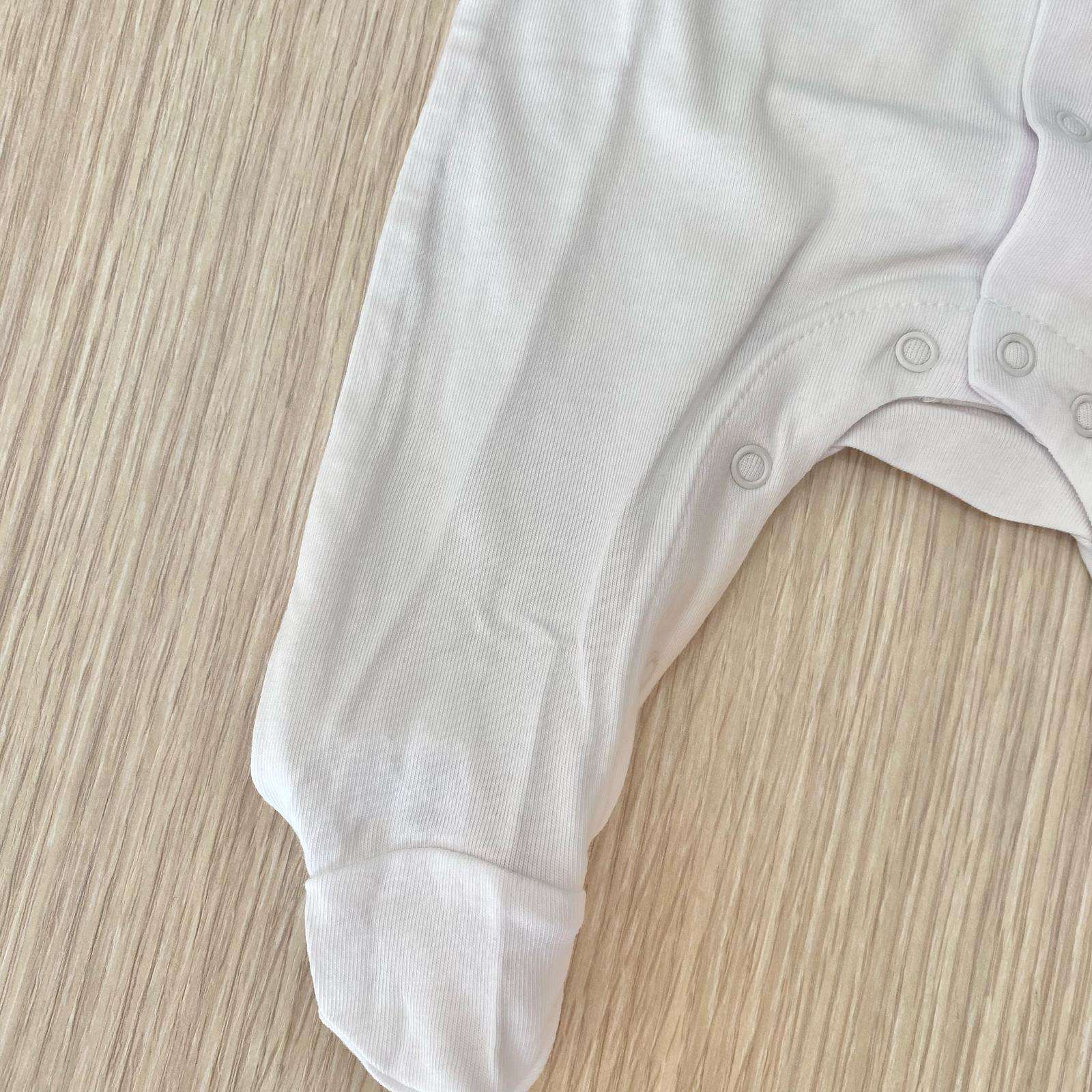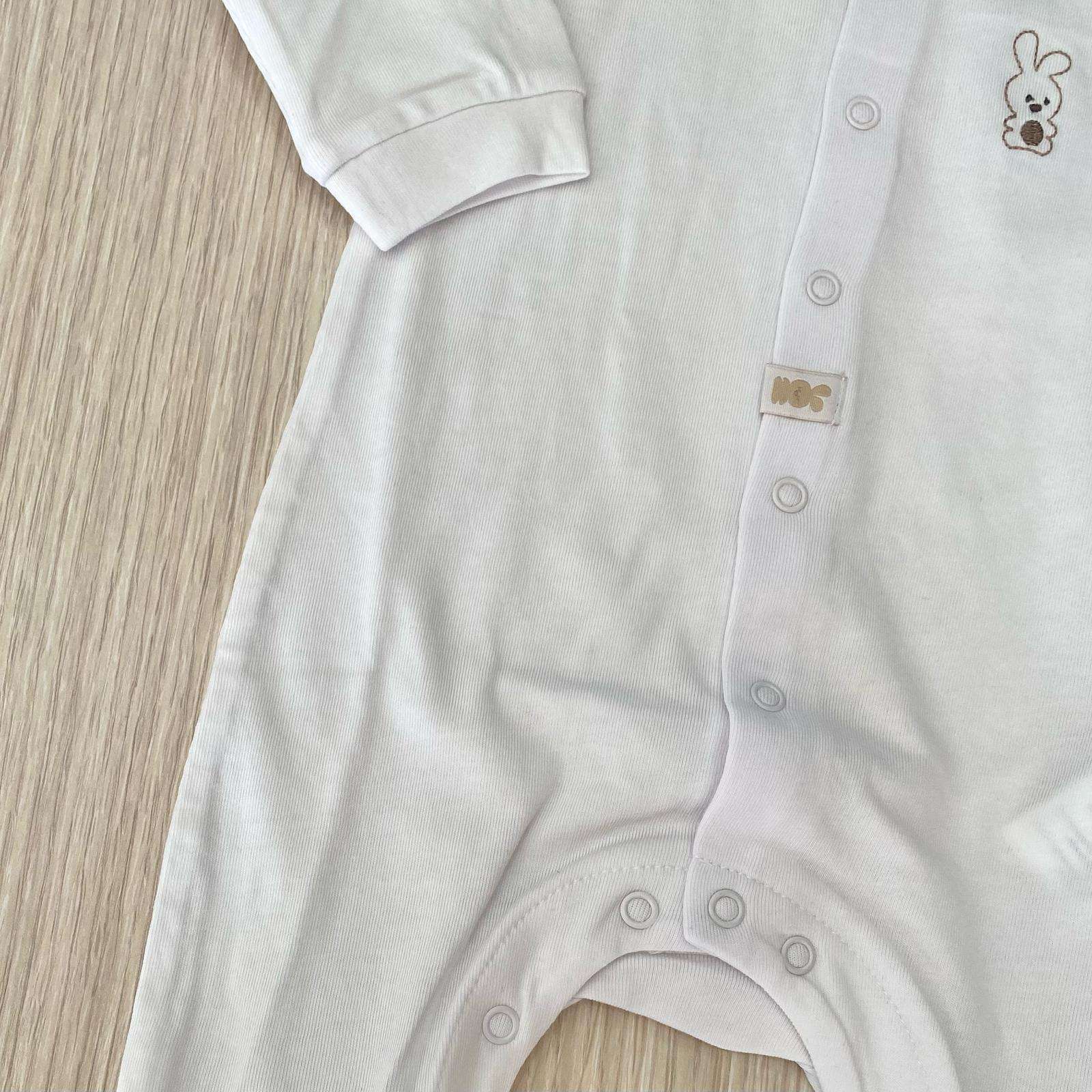 Tutina intera/pigiamino neonato/a in cotone, di colore bianco, con logo ricamato, di vari colori. Tutina con apertura sul davanti di bottoncini.