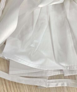 Vestina scamiciata elegante in tulle e organza rasata, di colore panna, con fodera 100% cotone.