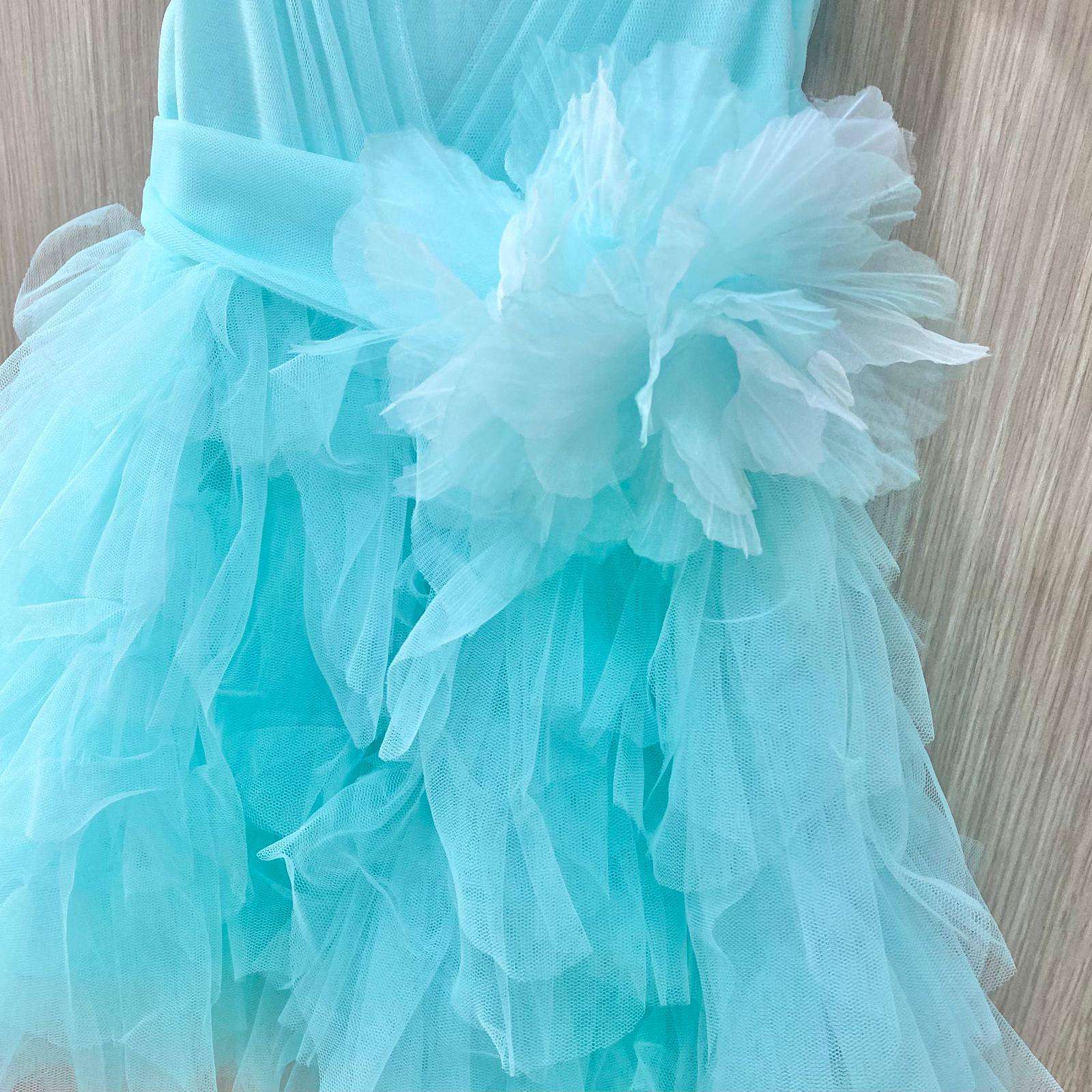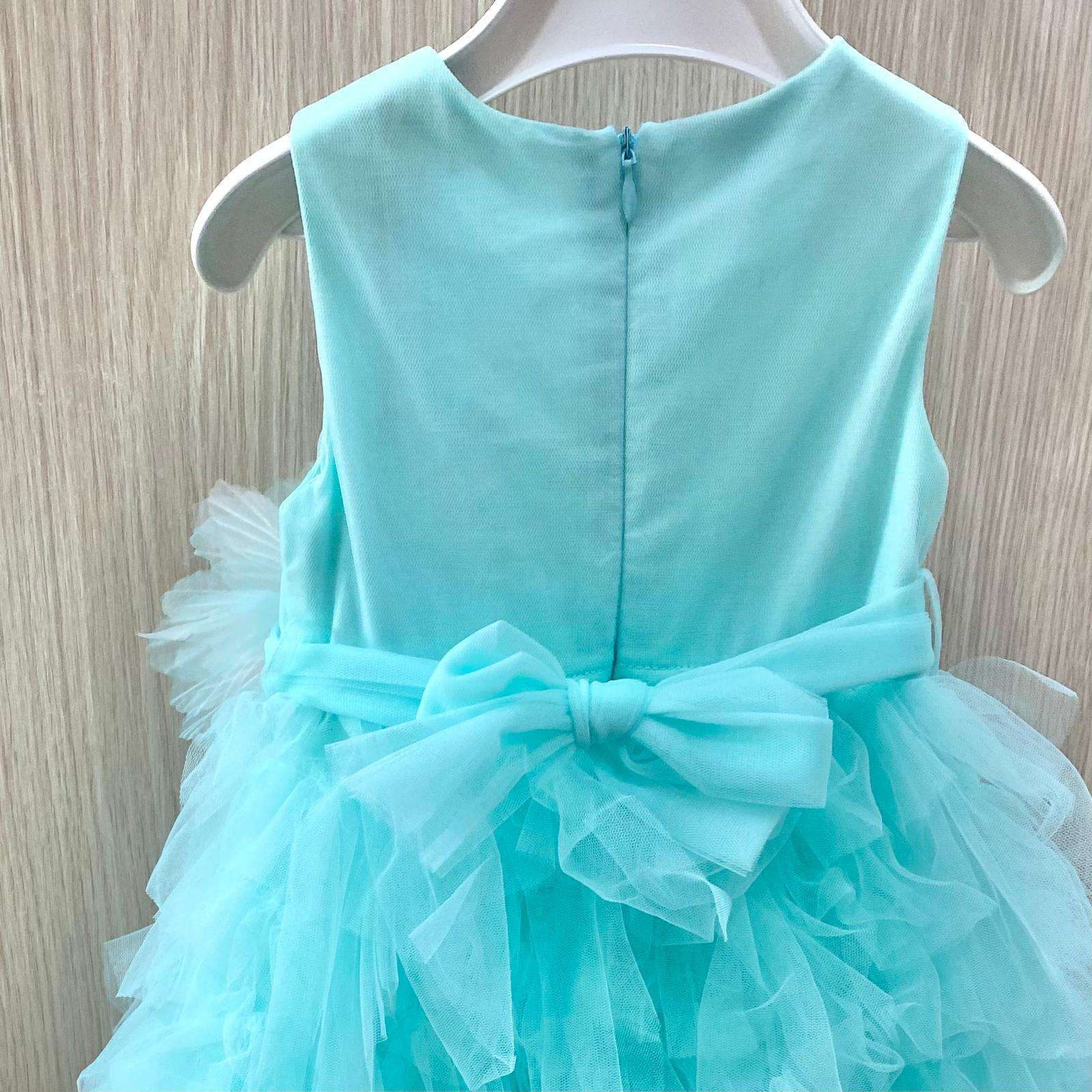 La gonna è ampia e vaporosa, composta da morbidi strati di tulle, creando un effetto romantico e leggero, con fodera in cotone all’interno. Vestina impreziosita da cintura in vita in tulle, con fiore in organza che impreziosiscono il modello con un dettaglio discreto e femminile. Ideale per cerimonia battesimale, damina e primo compleanno.