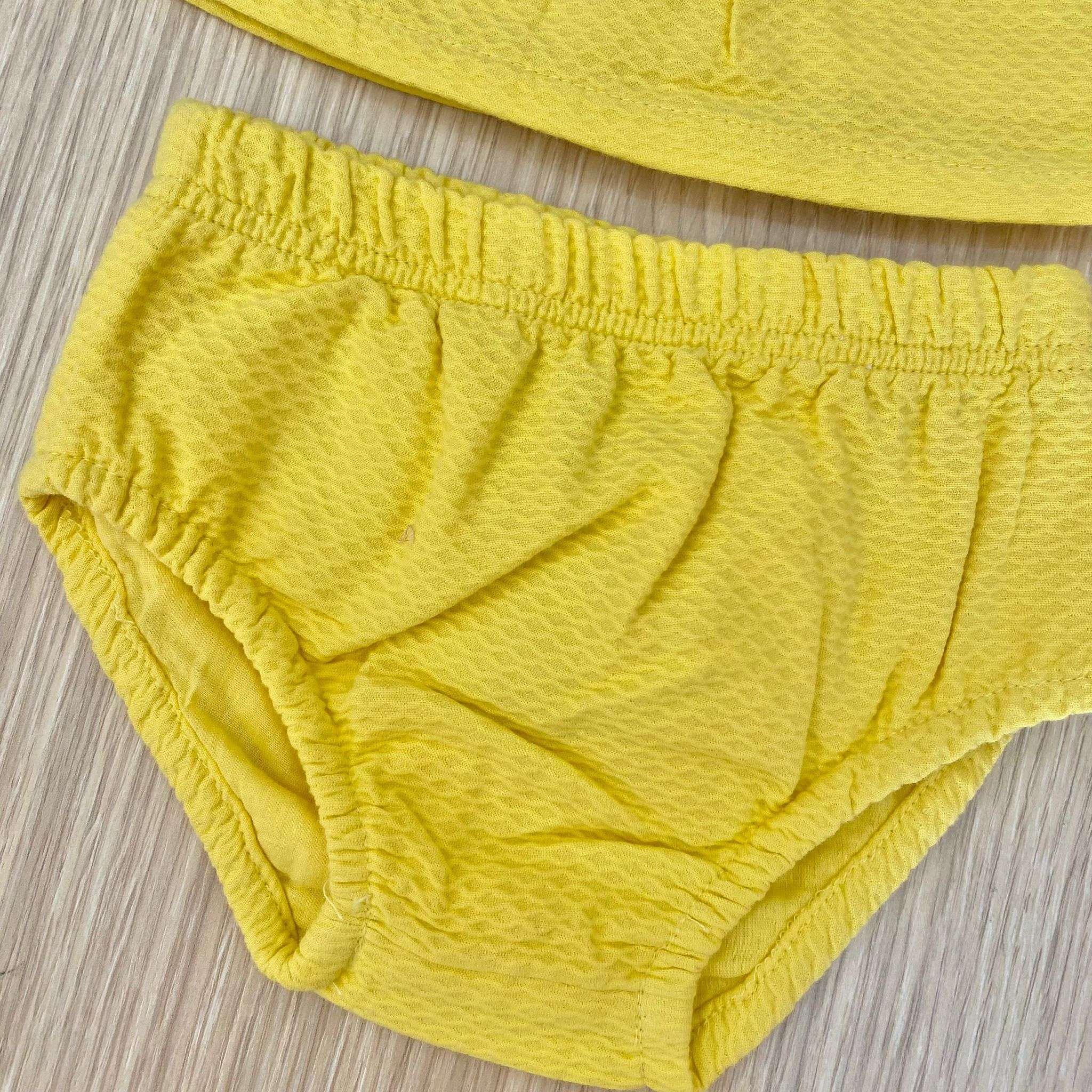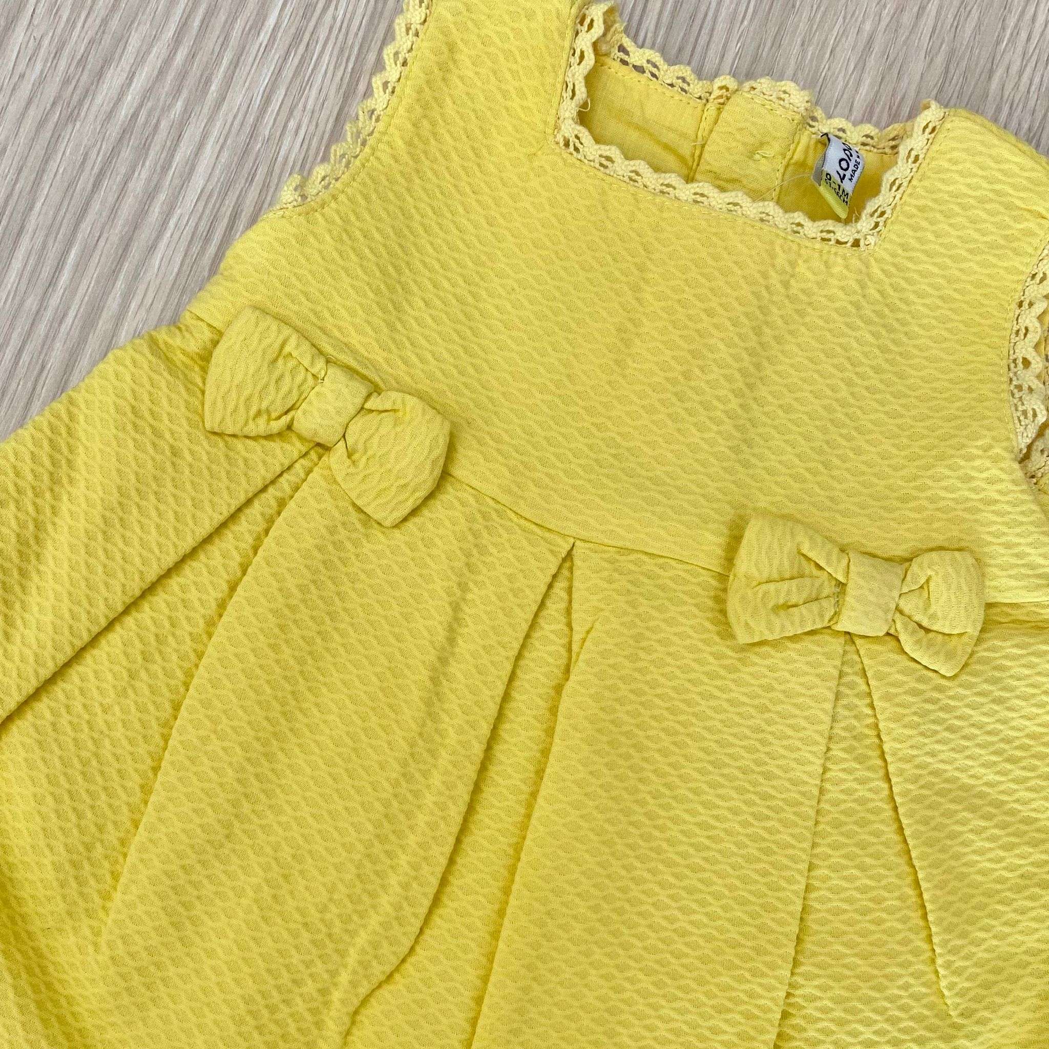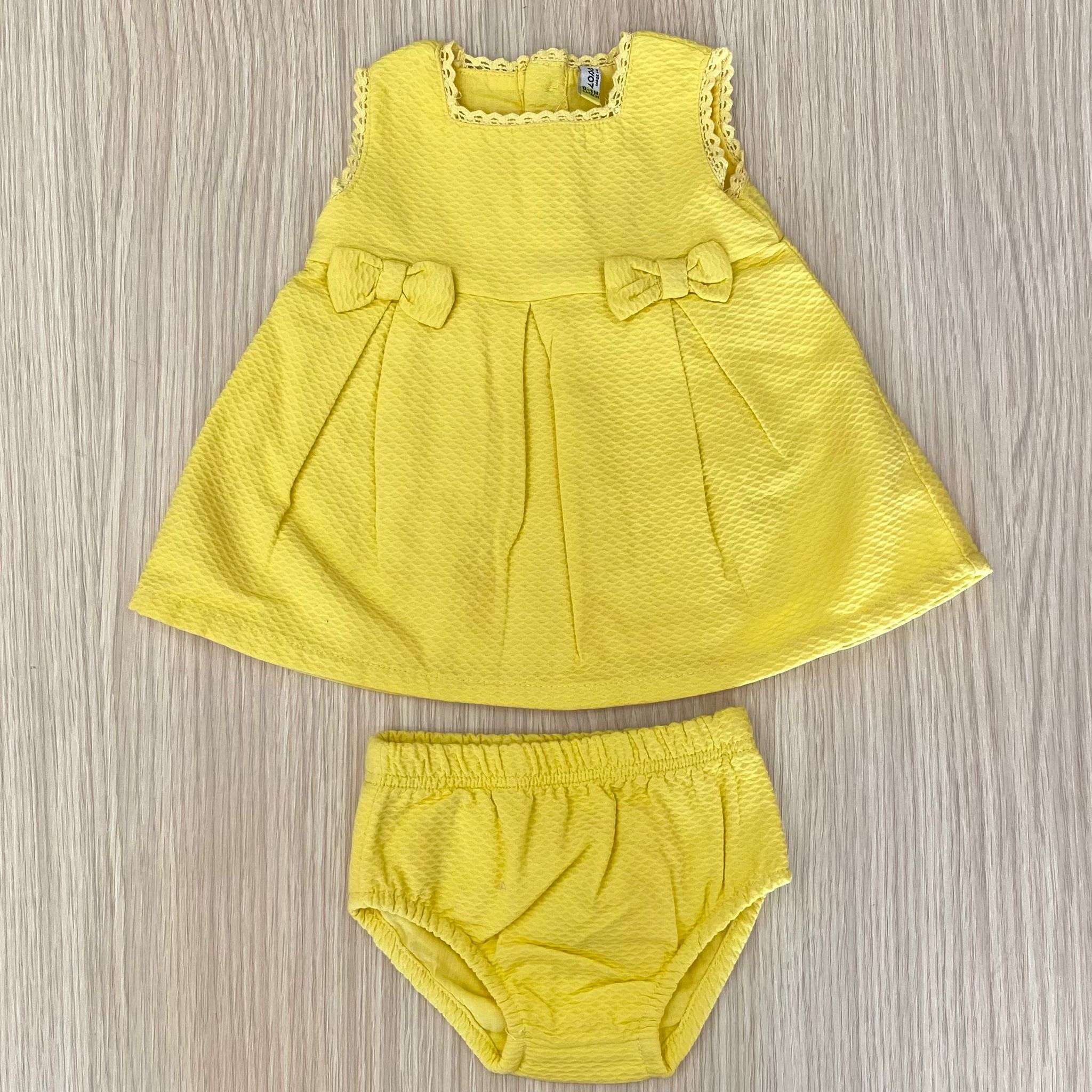 Vestitino con copripannolino neonata/bambina in cotone a nido d’api , di colore giallo, con ricami.
