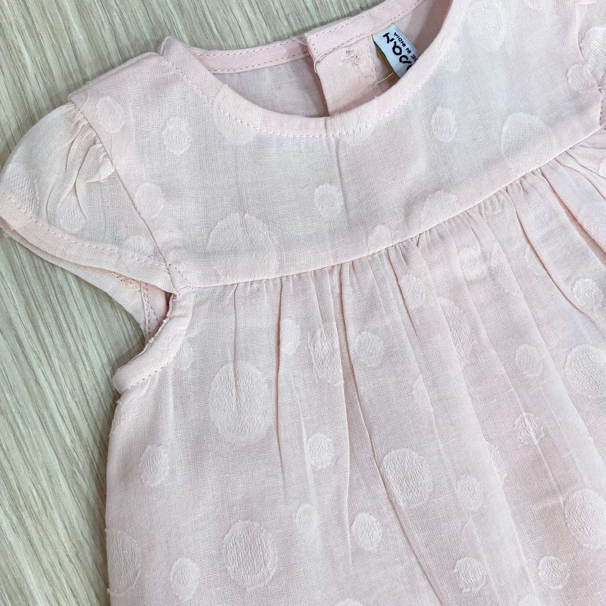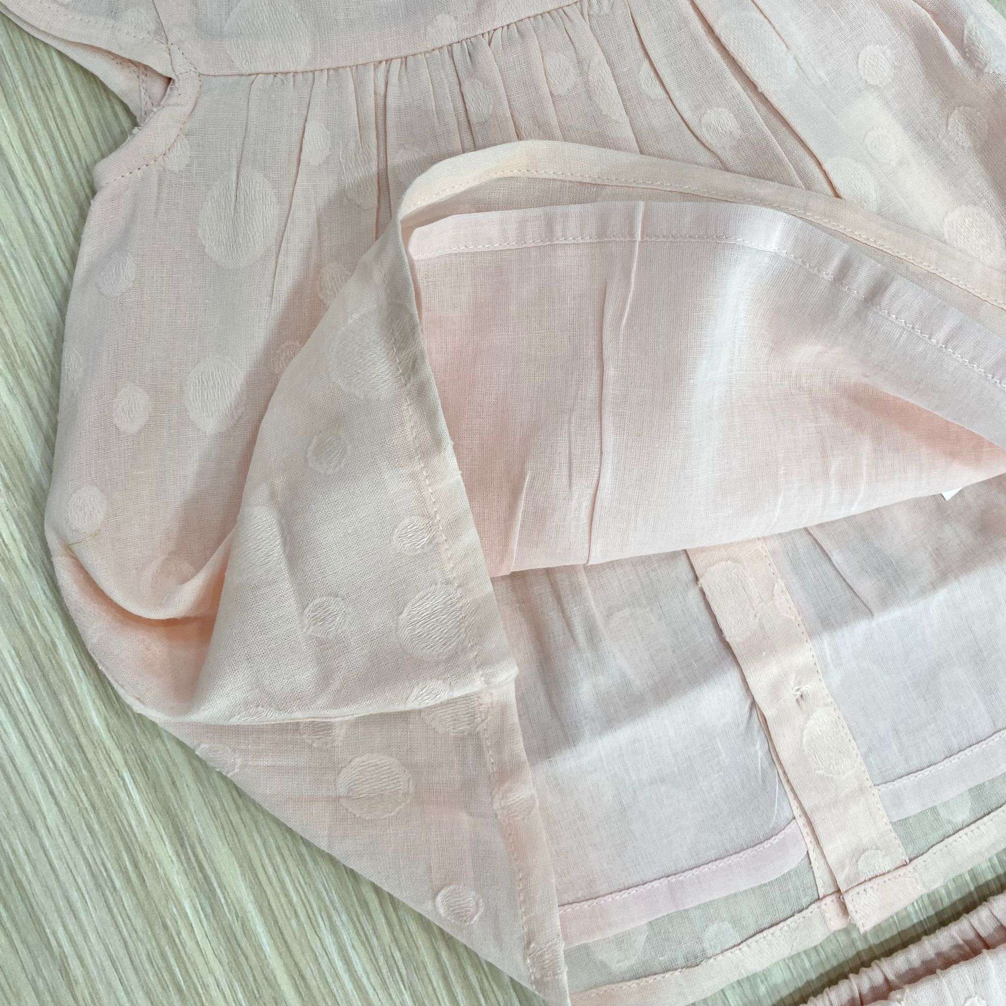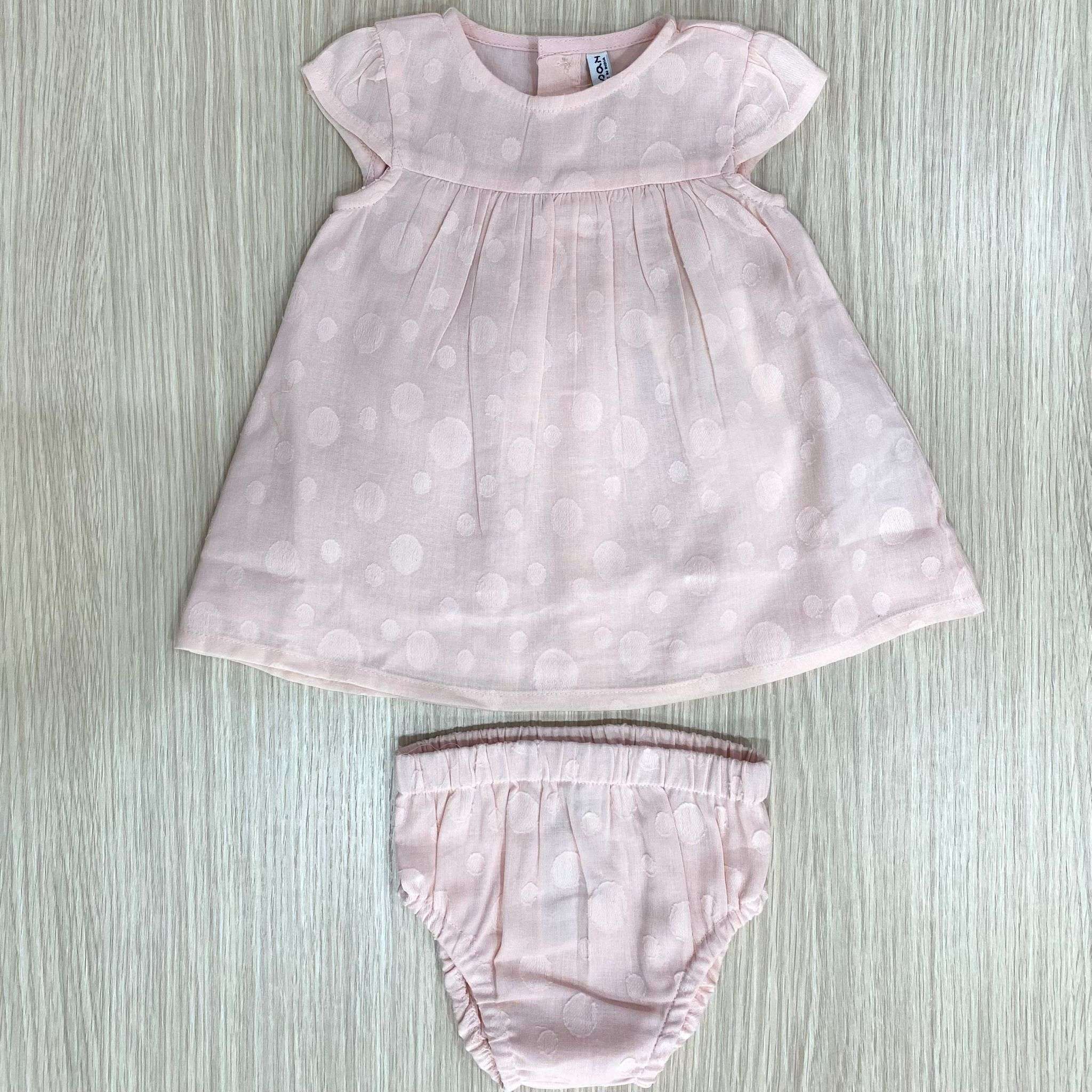 Vestitino con copripannolino neonata/bambina in cotone, di colore rosa, con ricami.