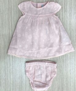 Vestitino con copripannolino neonata/bambina in cotone, di colore rosa, con ricami.